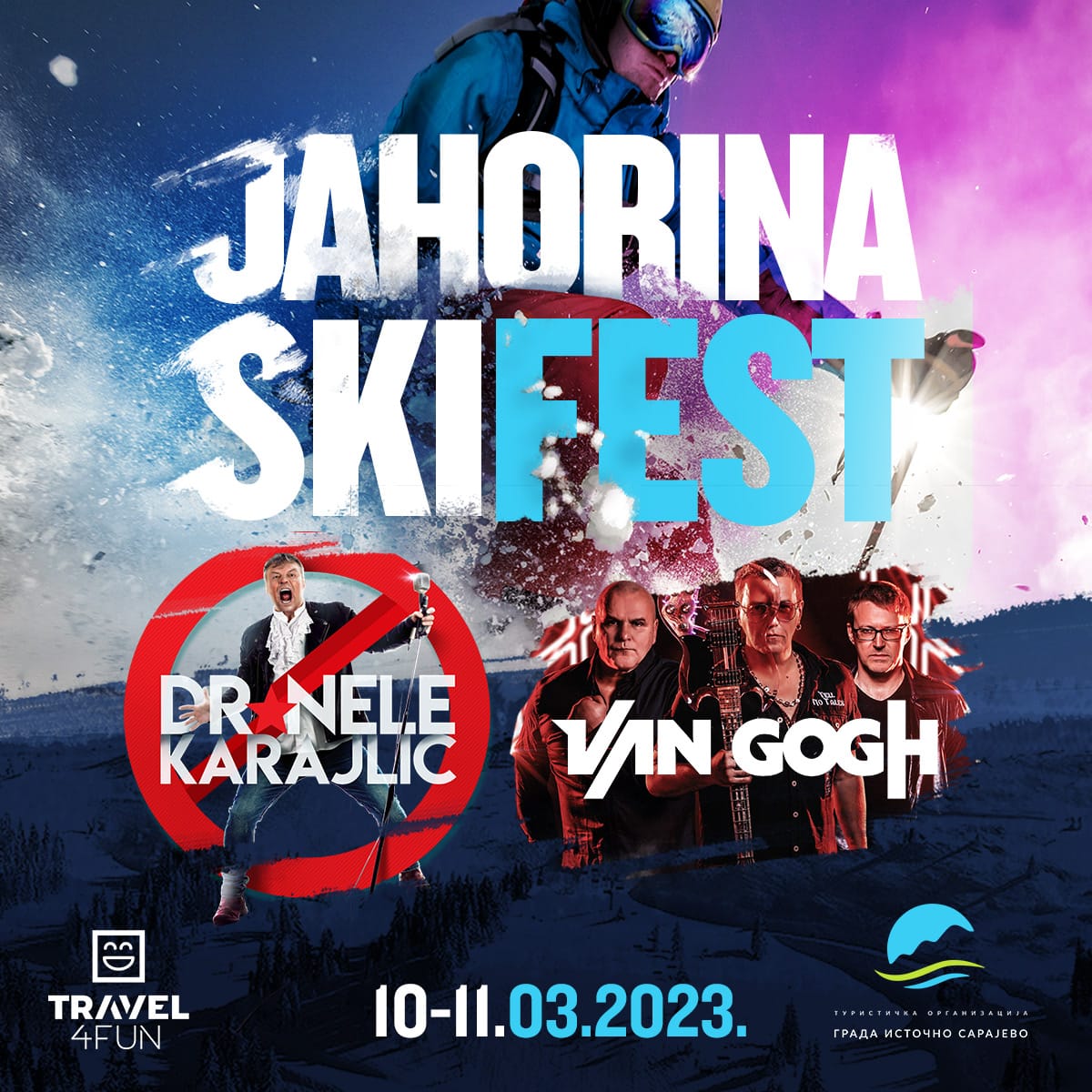 Prvi Jahorina SKI Fest će biti održan od 10. do 12. marta, a posetioce očekuju koncerti najvećih rok zvezda regiona. Prvo veče SKI Festa je rezervisano za koncert legendarnog rokera Dr Neleta Karajlića, a u subotu 11. marta svojom energijom publiku će zagrejati bend Van Gogh, koji je najavio i gosta iznenađenja.